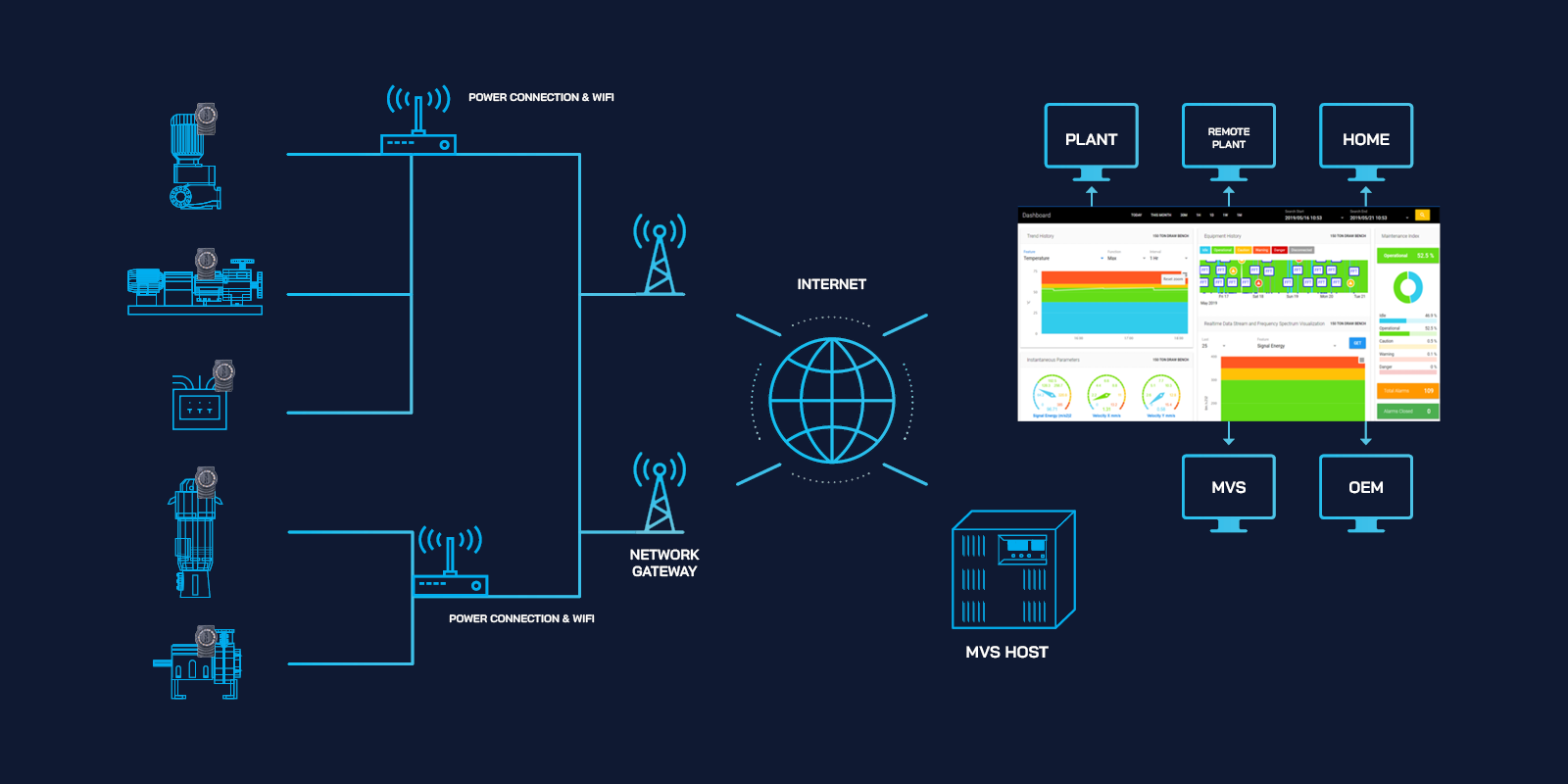 MVS RealTime 4.0 offers a flexible subscription-based reliability services to its customers by providing in-house smart sensor nodes along with Connectivity, Communication, Software Analytics which can be integrated on any IoT platform for dashboarding and reporting in order to provide a complete solution to its customers.